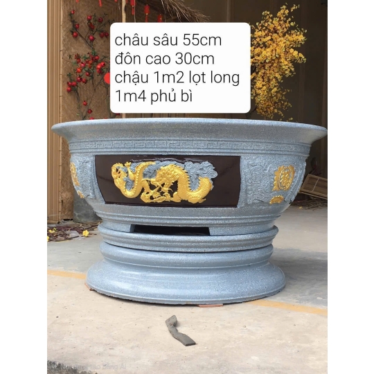 Chiếc chậu xi măng họa tiết Rồng vàng vượt nổi dưới đây sẽ là điểm nhấn hoàn hảo nâng tầm không gian sân vườn, nhà phố đến biệt thự.